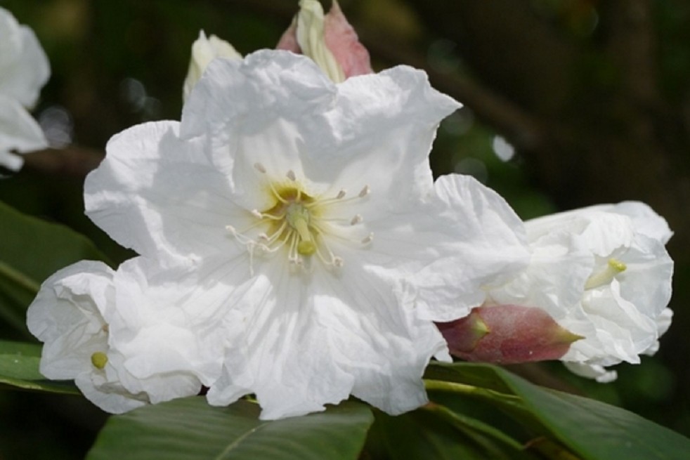 Der Rhododendron Polar Bear ist eine Sorte, die 1946 mit dem First Class Certificate ausgezeichnet wurde: Seine prächtige Blüte im späten Frühjahr bietet ein ebenso ästhetisches wie stark duftendes Schauspiel! Dieser sehr kräftige Strauch schmückt sich Anfang Juni bis Juli mit großen weißen Blüten auf einem wunderschönen, smaragdgrünen, immergrünen Laub. Die röhrenförmigen, leicht zerknitterten Blütenstände stehen in großzügigen, reinweißen Büscheln zusammen und verströmen im Garten einen süßen Duft, der an die Lilie erinnert.
