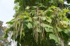 Im September zeigt der Trompetenbaum einen überraschenden Fruchtstand. Lange Bohnen, die 30-40 cm lang sind, bilden den Abschluss seines Auftritts, bevor im Herbst die ersten Blätter fallen, was ihm auch den Namen Bohnenbaum eingebracht hat.