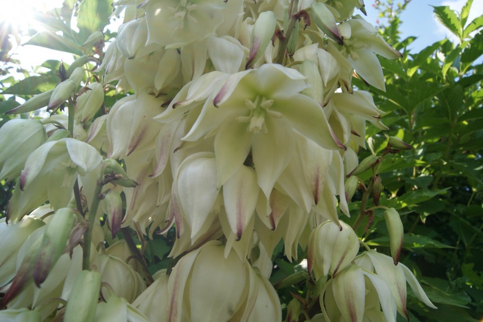 Perfekt in einem Steingarten, auf einer Böschungoder in einem Topf steht die Yucca filamentosa Bright Edge im Beet und sorgt das ganze Jahr über für eine exotische Atmosphäre.