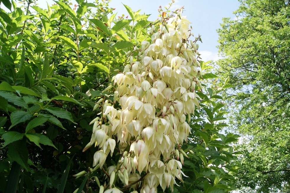 Perfekt in einem Steingarten, auf einer Böschungoder in einem Topf steht die Yucca filamentosa Bright Edge im Beet und sorgt das ganze Jahr über für eine exotische Atmosphäre.