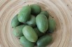 - Frucht : glatte Haut, rotes und grünes Fruchtfleisch, 3 cm, süß