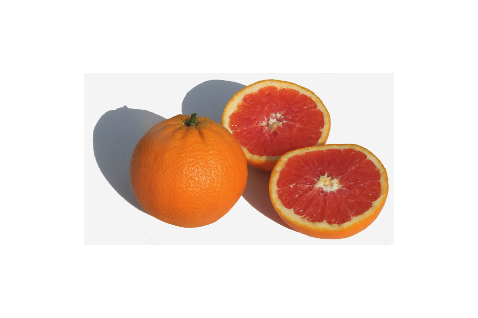 Besonderheiten: Die rosafarbene Frucht entsteht durch Lycopin, ein Antioxidans. Spontane Mutation der Washington Navel.