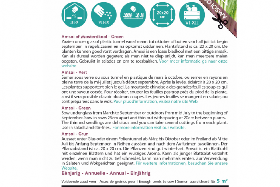 - Aussaatperiode : März bis Mai oder August bis Oktober