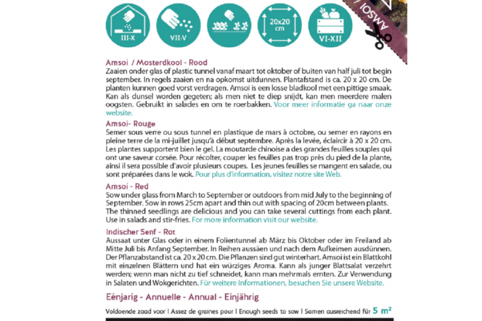 • Volksname : Indischer Senf Rot - Chinesischer Senf - Braune Senf - Indischer Senf- Sareptasenf - Ruten-Kohl - Orientalischer Senf - Amsoi Mung Choi