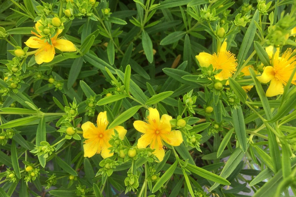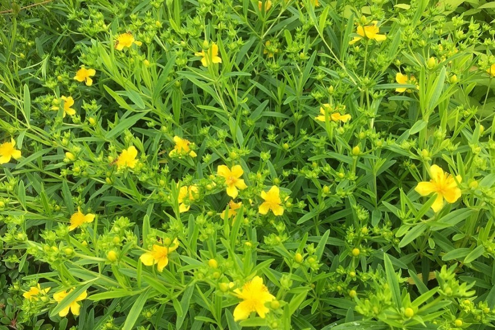 Hypericum kalmianum, oder Kanadisches Johanniskraut, bildet einen kleinen, runden, kompakten Strauch. Den ganzen Sommer über ist er mit kleinen goldgelben Blüten bedeckt, die sich deutlich von dem dunkelgrünen Laub mit bläulicher Rückseite abheben. Der kleine Strauch stammt ursprünglich aus Nordamerika und wächst schnell. Als ausgewachsener Strauch wird er zwischen 60 und 90 cm hoch und ebenso breit. Seine leuchtend gelben Blüten sind klein und haben einen Durchmesser von 2 cm. Sie sind honigsüß und ziehen bestäubende Insekten an. Sie blühen dicht und bedecken den Strauch von Juli bis September. Auf die Blüte folgen kleine, dekorative, nicht essbare Früchte, die Vögel anlocken. Das lanzettliche Laub mit länglichen Blättern ist halbimmergrün, aber der Strauch hält Minustemperaturen bis zu -20 °C gut stand.