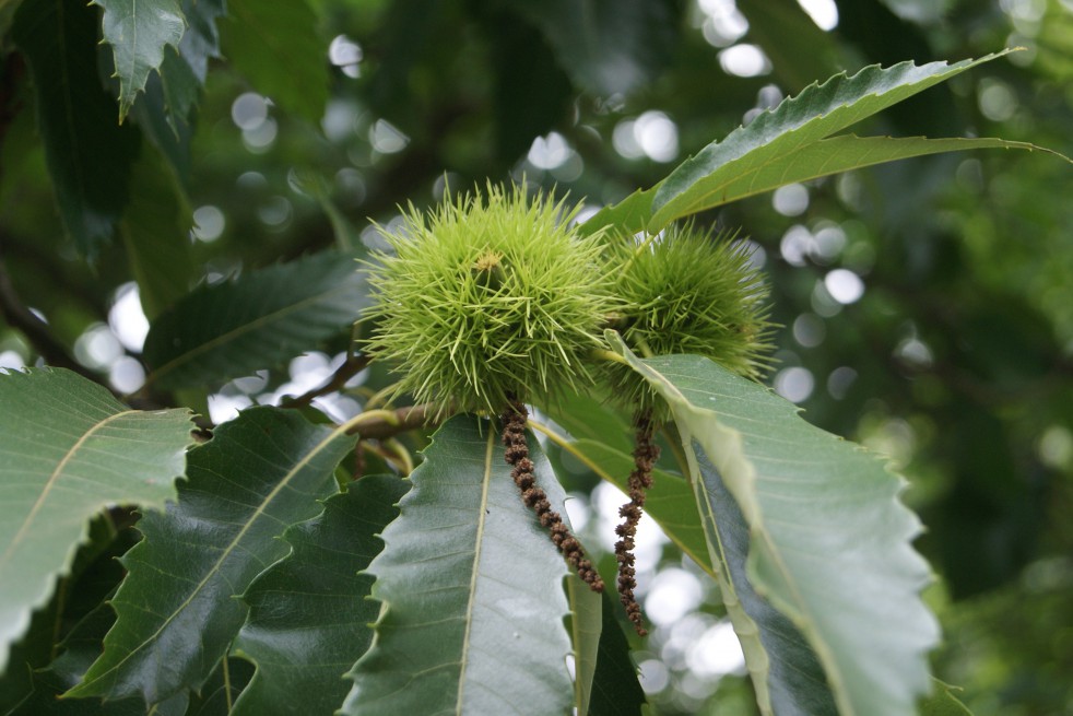 The Spanish chestnut is a majestic tree with raised port, it may live more than a thousand years. Interesting due to its chestnut production. We can also use the leaves that fall in autumn to make good mulches.