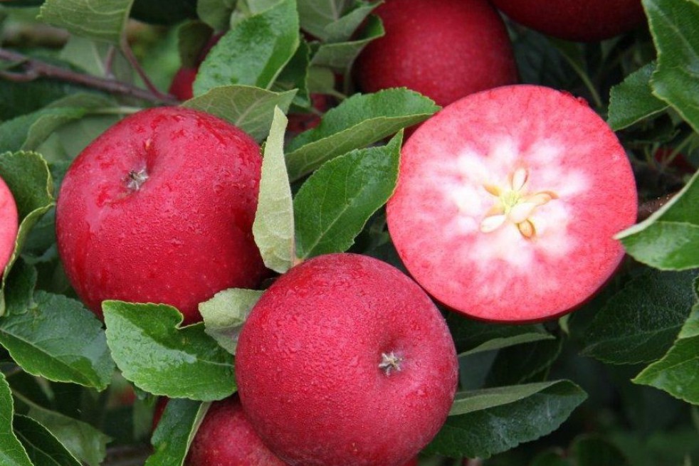 This Rosette apple tree is unique in its kind! It produces red-fleshed apples, crisp raspberry taste slightly, the extracted juice is pink and refreshing.