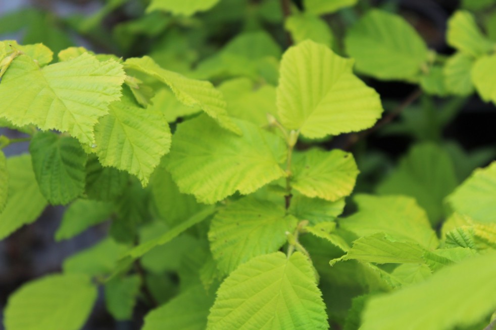 Corylus avellana Aurea is a very decorative hazelnut tree with golden foliage. Appearing quite late, around mid-May, the large golden yellow leaves, which turn green in mid-summer, give it a luminous appearance that stands out from afar.