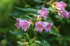 Its abundant flowering in terminal pannicles with flowers in the shape of lilac pink tubular bells, is fragrant, they cover the arched branches of this small shrub from June to October. Once flowering is complete, it gives way to pretty, very decorative reddish bracts that last until winter.