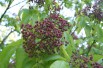 Tetradium Daniellii blooms from late spring to late summer, depending on the climate. It is made up of many corymbs of small, creamy white or pale yellow, very fragrant flowers. These flowers are unisexual and have 4 or 5 petals and the same number of stamens as the male flowers. The female flowers are surrounded by nectar discs that attract bees and provide them with enough nectar to last through the winter. Flowering is followed in autumn by clusters of small, pointed-beaked red capsules, containing shiny black seeds coveted by birds.