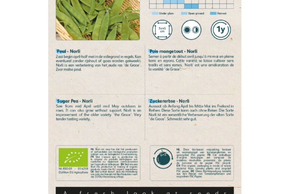 - When to sow? Sugar Peas Norli can generally be sown from early April to mid-May. For a staggered harvest, it is advisable to sow several seeds.