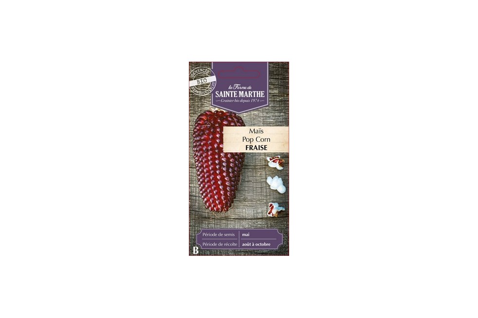 Popcorn Red Strawberry is a very original and decorative variety, it gives rather round, burgundy red ears, the size of a large strawberry (5 to 6 cm). Of erect habit, this plant with annual vegetation culminates at only 1 m high.