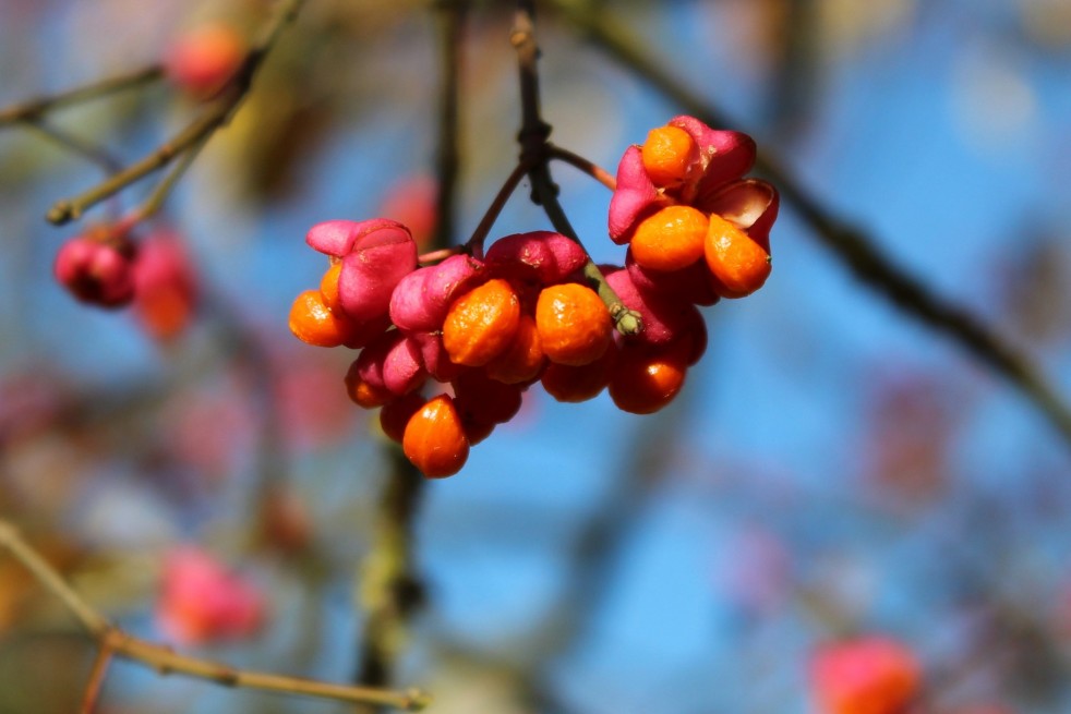 The European spindle is very hardy (-25°C to -30°C) and not very demanding in terms of soil type. It prefers to be placed in a sunny or semi-shaded area. When fully grown, it can reach a height of 3 to 6 metres and a circumference of about 3 to 5 metres. It is an excellent choice for a free hedge or as part of a country bed, its decorative fruits are much appreciated by birds.