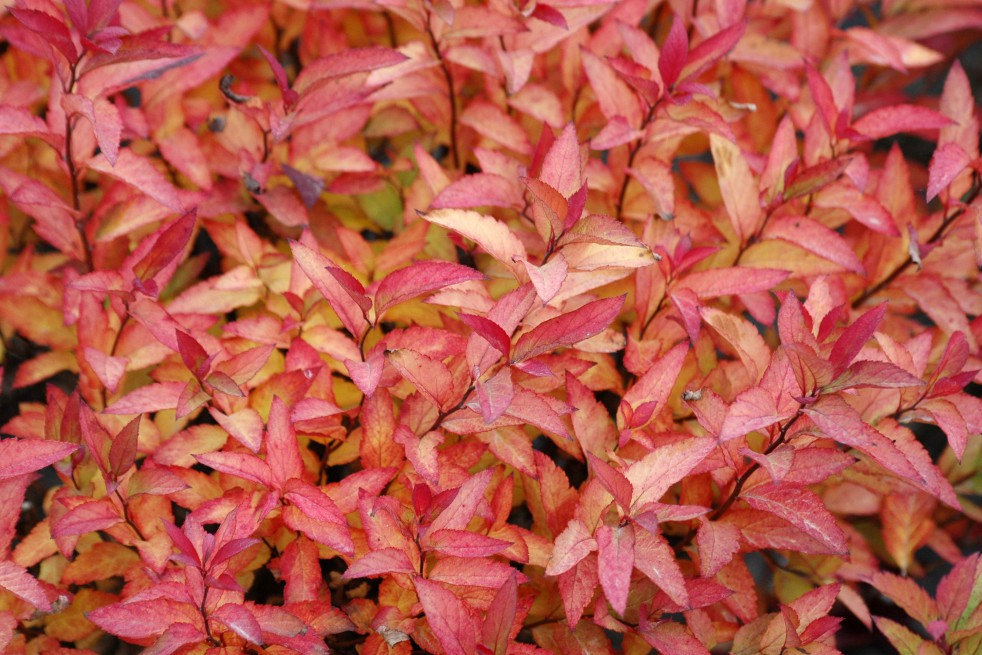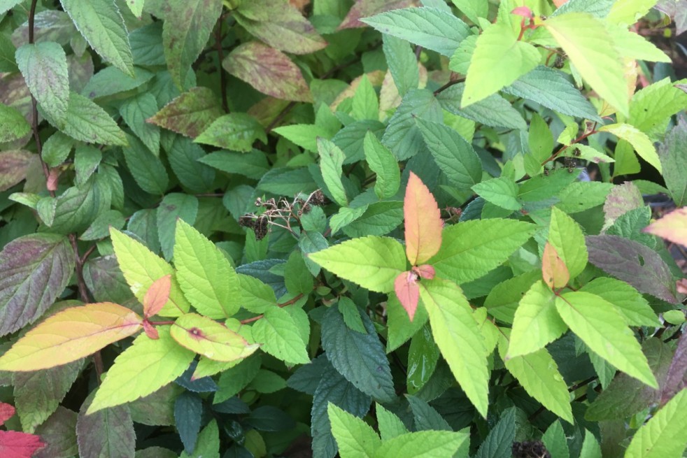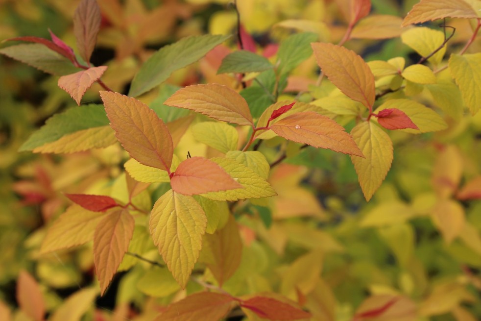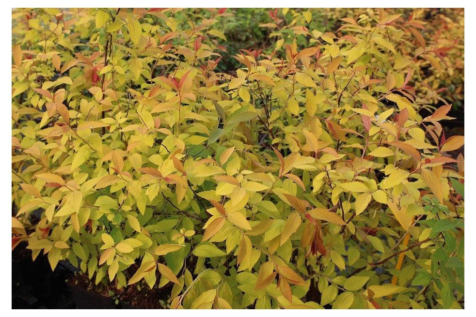 The Japanese spirea Goldflame is a small shrub with a rounded port.