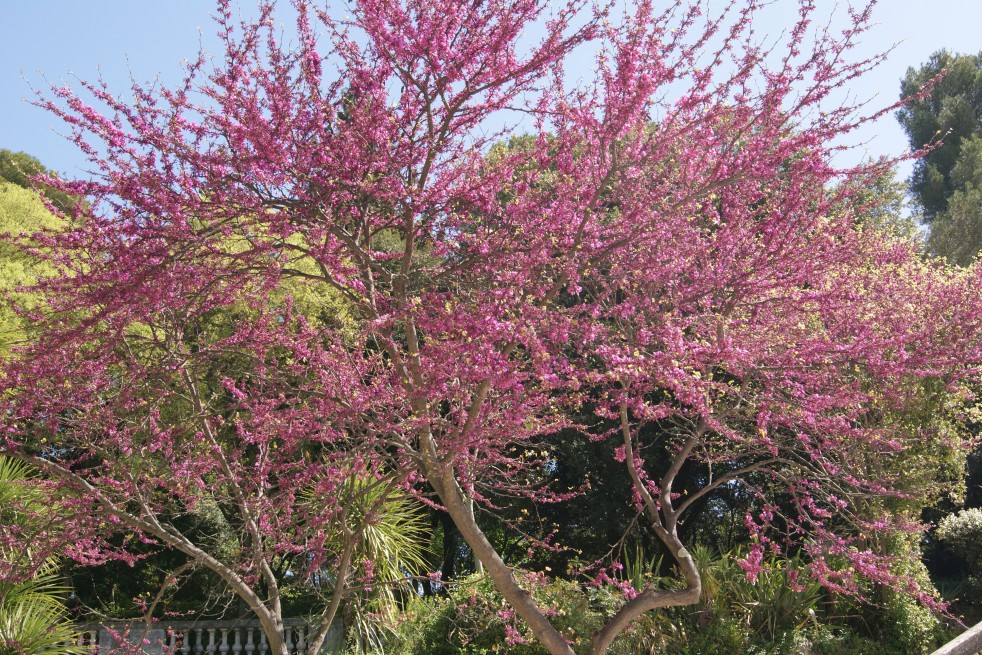 Sa floraison en avril est magnifique, des inflorescences rose fuchsia apparaissent le long des rameaux et sur le tronc. Le contraste entre le bois foncé et les fleurs colorées est éblouissant. Les jeunes feuilles arrivent ensuite et ajoutent encore à la beauté du spécimen. L'arbre de Judée, originaire d'Asie, présente un intérêt esthétique tout au long de l'année : au printemps, la floraison est grandiose et les feuilles de forme arrondie sont d'un beau vert, et à l'automne, on peut observer de grandes gousses qui resteront tout l'hiver sur l'arbre.