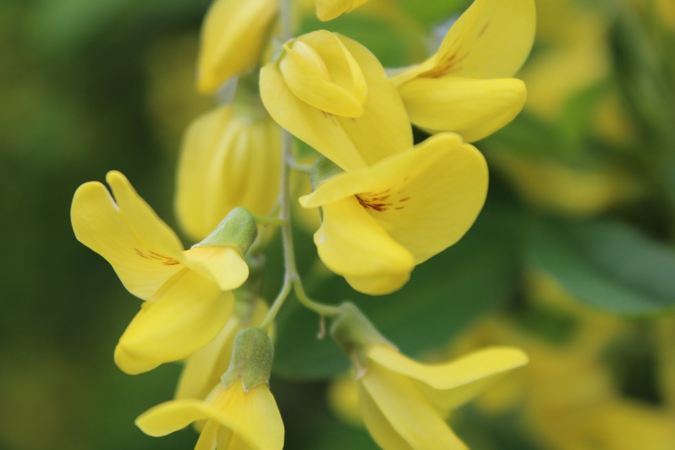 Fleurs : Longues grappes pendantes de fleurs jaunes, très mellifères, suivies de gousses contenant les graines