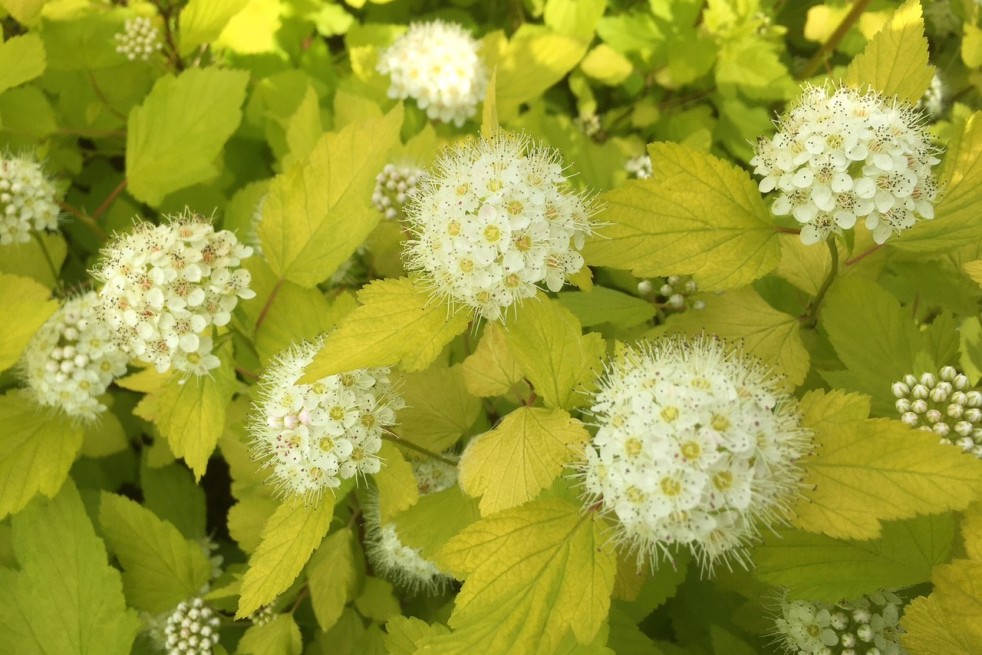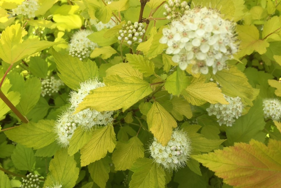 La floraison du Physocarpe à feuilles d'Obier Dart’s Gold intervient en mai-juin sous forme de corymbes blancs suivis par une fructification de petites baies noires décoratives et persistantes jusqu’à l’automne.