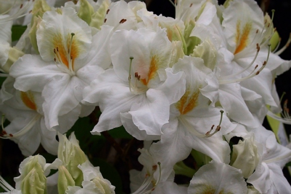 L’Azalea Knap Hill Schneegold ou Azalée de Chine Schneegold est un splendide arbuste caduc à fleurs blanches. Elle se caractérise par sa floraison généreuse, qui survient début mai. Ses fleurs sont grandes, en forme de trompette, et ornées d’une macule jaune au centre. Elles dégagent un doux parfum, qui embaume le jardin et attire les abeilles. Elles contrastent avec le feuillage vert clair virant au rouge bronze en été puis au rouge sombre à l'automne.