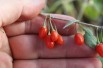 Le Goji commence à fructifier dès sa 2ᵉ année, les petites fleurs mauves en forme de clochettes apparaissent de façon continue de juin à septembre, elles sont bisexuées et autofertiles, mais la pollinisons croisée avec un autre sujet à proximité favorise le rendement en quantité de ses petites baies orange à chair pulpeuse. La récolte des baies de Goji s’opère de la fin août jusqu’à l’automne, après la cueillette, elles peuvent être consommées fraîches, mais généralement, elles sont mieux appréciées séchées, dans ce cas, ces petits fruits miraculeux sont mis à sécher dans un endroit sec et bien aéré puis conservé dans un bocal pour être consommé tout au long de l’hiver.