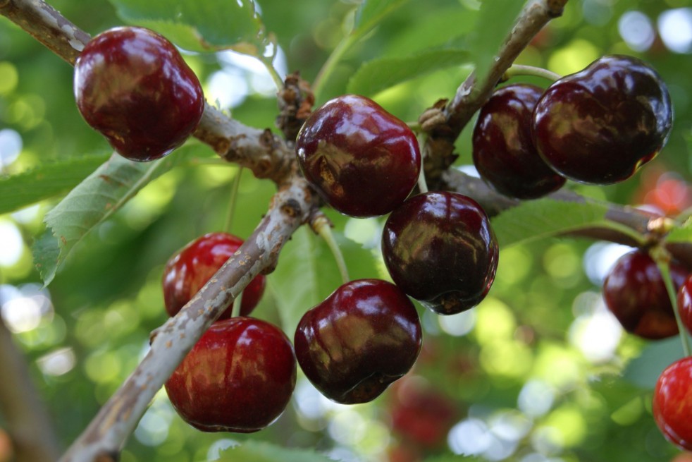 - Fruit : grosses cerises rouges brillantes, juteuses, sucrées et acidulées