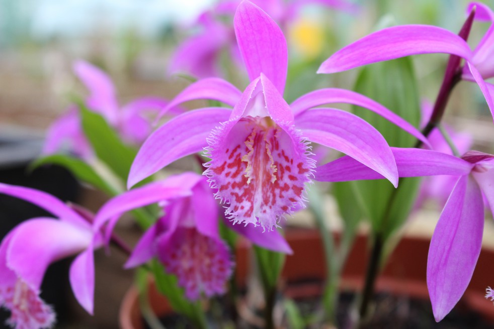 Cette orchidée vivace originaire d'Asie présente des fleurs de couleur fuchsia impressionnantes à partir du mois d'avril, elle est semi-rustique (-10°C).