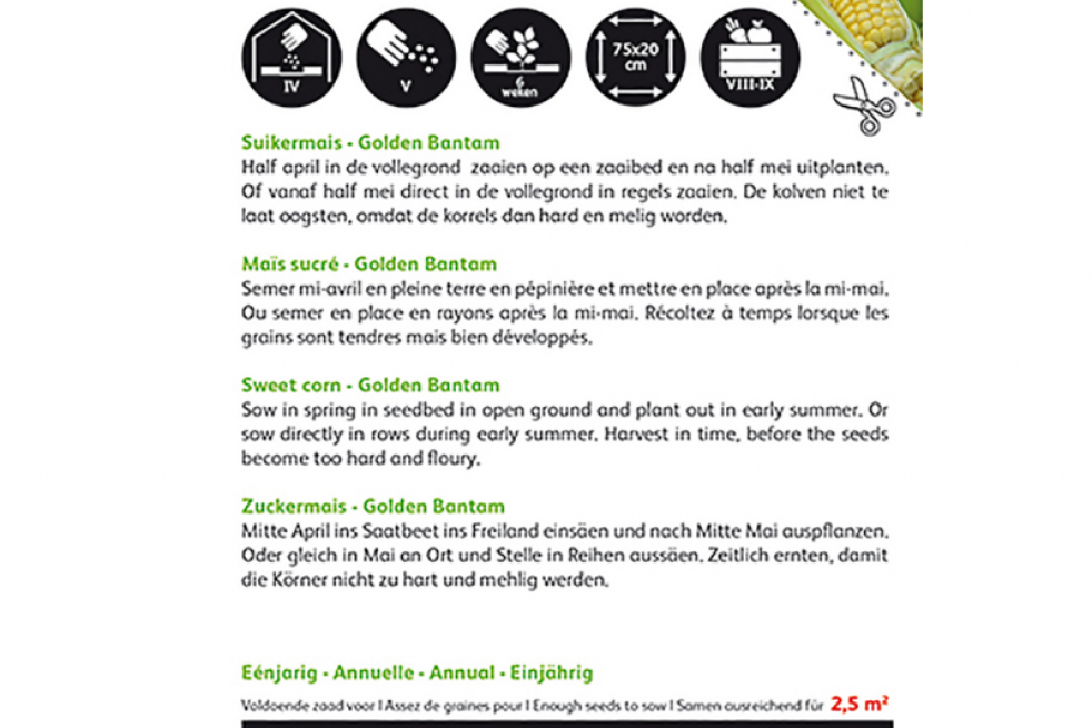 - Nom commun : Maïs sucré Golden Bantam