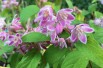 Bloemen: Trossen stervormige bloemen, roze van binnen, donkerroze met witte rand aan de buitenkant, subtiel geurend.