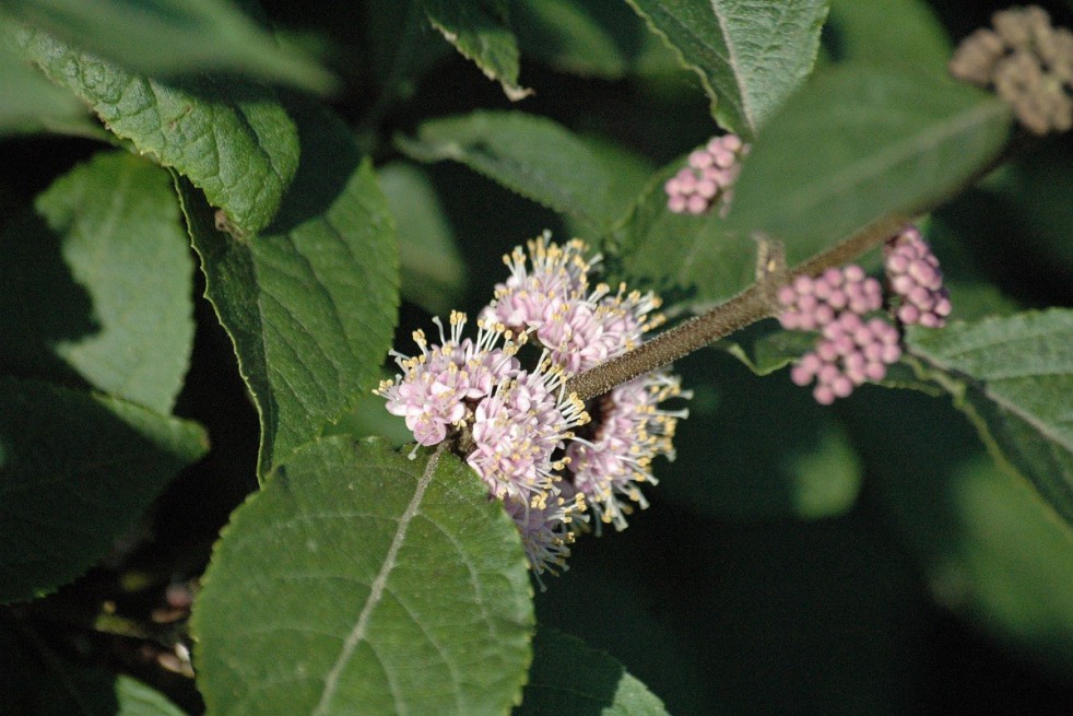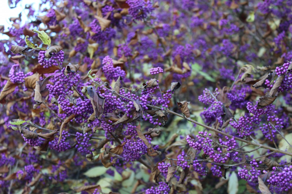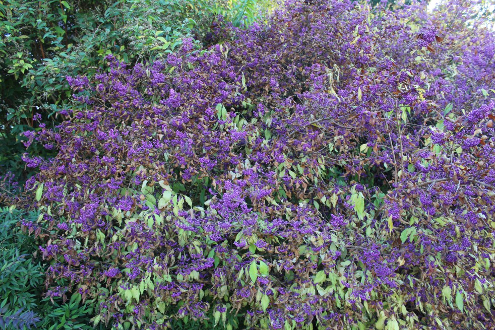 De Callicarpa brengt ook kleur aan de tuin als het meest nodig heeft.