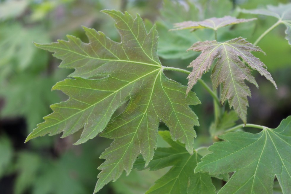 Witte esdoorn lijkt erg op Rode esdoorn, waarmee het gemakkelijk kan hybridiseren. Ze kunnen echter worden onderscheiden door hun veel grotere, dieper gelobde bladeren met een zilverachtige onderkant. Het is ook heel gemakkelijk te onderhouden, waardoor het een populaire keuze is onder beginners en ervaren tuiniers.