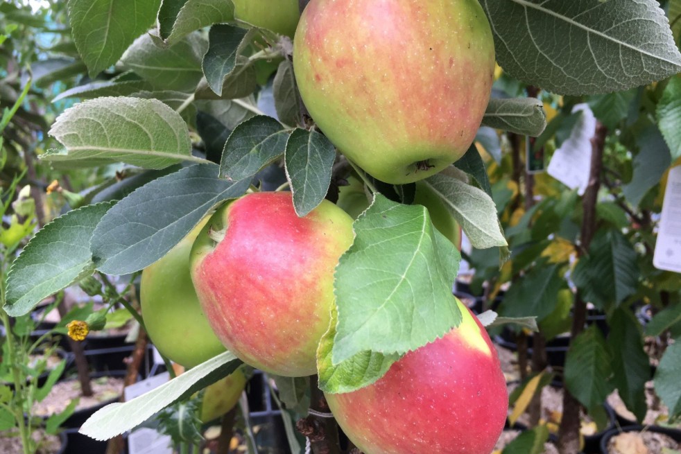 - Fruit : grote donkerrode appels met sappig en knapperig wit vlees