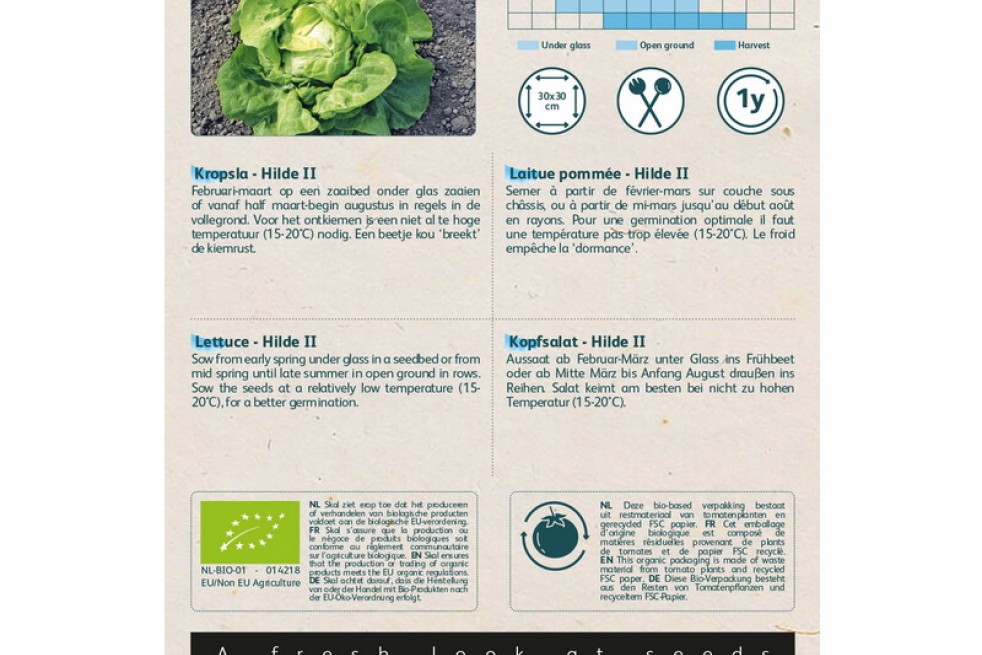 De Kropsla Hilde II wordt zeer gewaardeerd om zijn volle hart en zijn zachte bladeren in de lente en zomerteelt, voor de meest ongeduldigen om vanaf februari te zaaien op een laag onder het frame, buiten het zaaien kan worden uitgevoerd vanaf half maart en verspreid tot begin augustus om het hele seizoen door sla te krijgen in de moestuin.