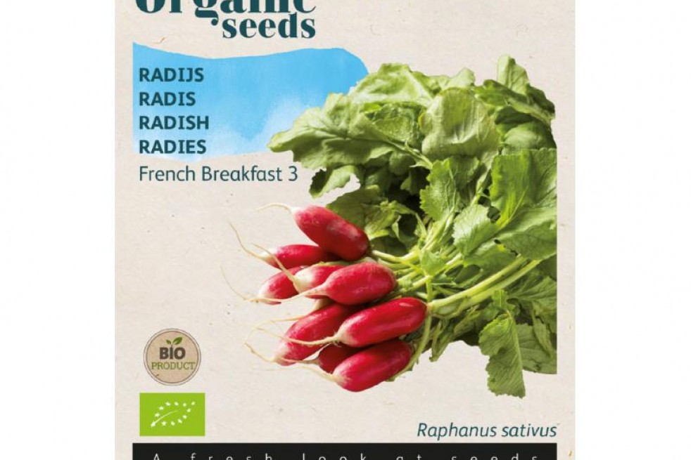 Deze biologische zaadzak Radijs French Breakfast 3 is genoeg voor 2 M².